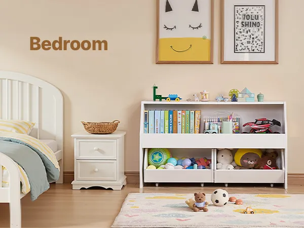 Dotato di ruote per una facile mobilità, che ti consentono di spostare il contenitore e l'organizzatore per giocattoli senza sforzo.