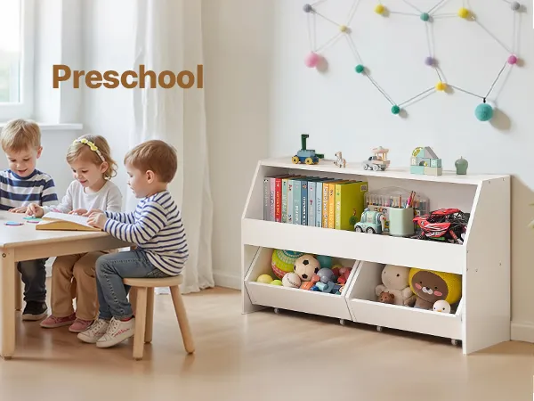 Organizzazione ottimizzata: questo mobile contenitore per bambini è dotato di tre scomparti e un ripiano superiore. Aiuta i bambini a tenere in ordine giocattoli, libri e altri oggetti
