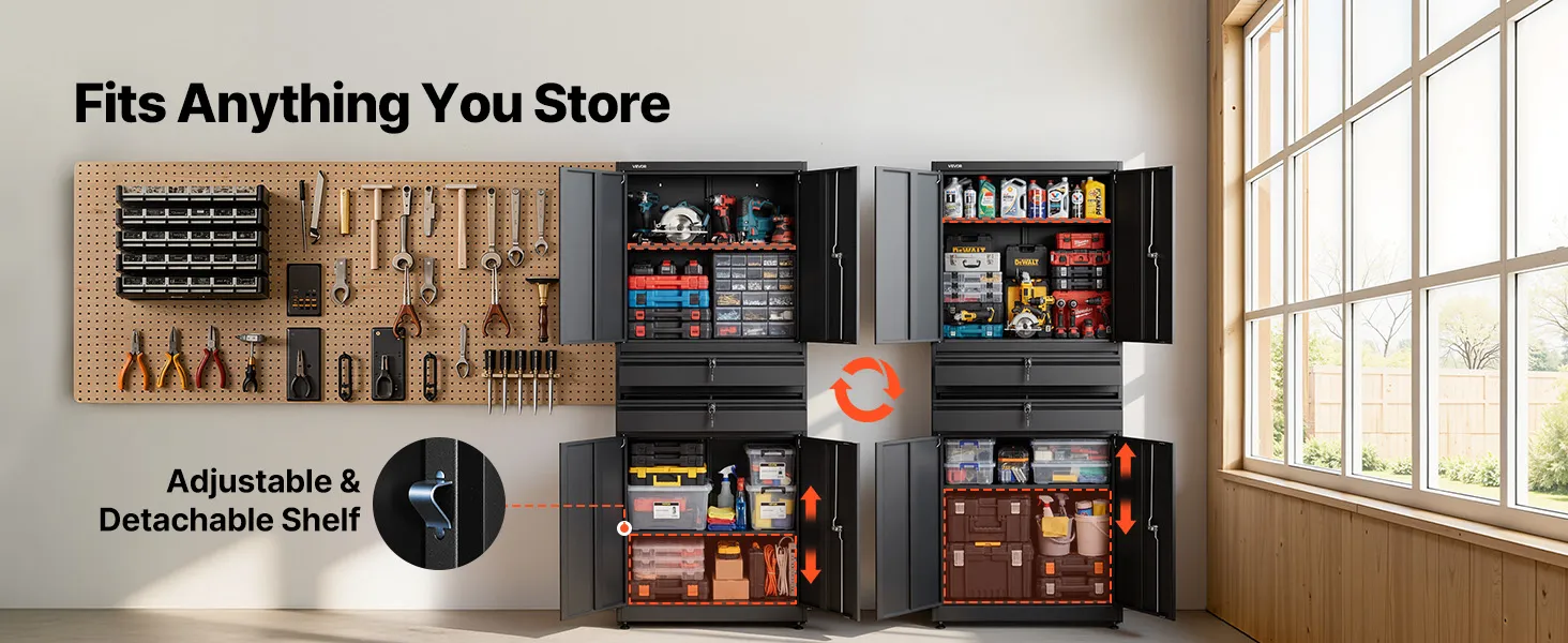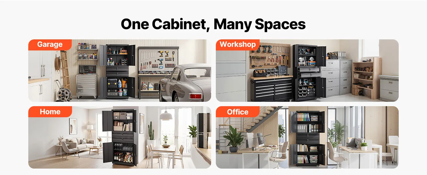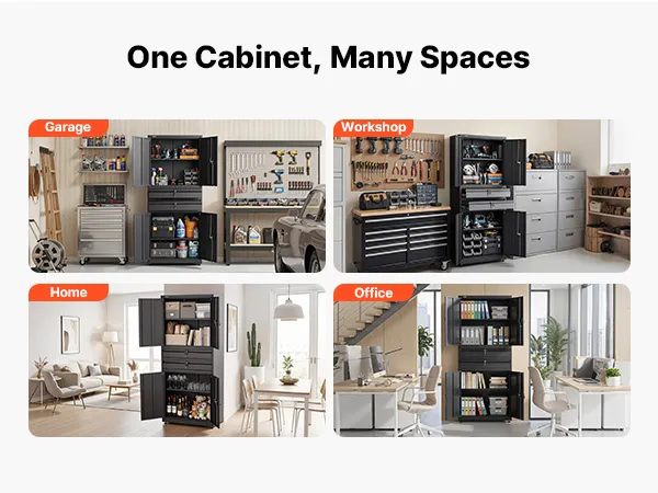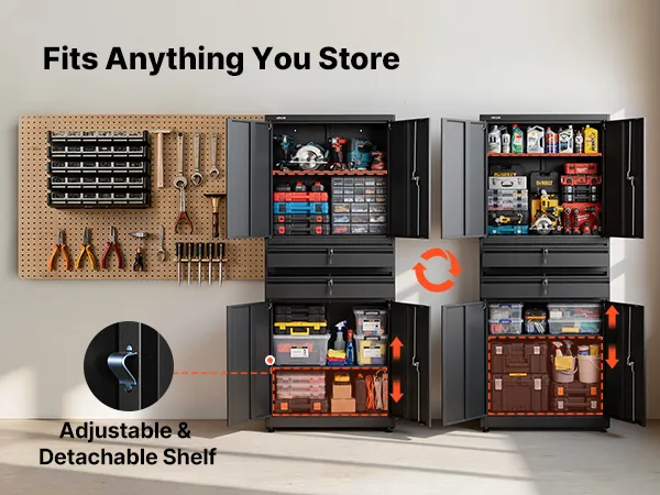 Progettato per resistere a utensili elettrici e attrezzature pesanti, questo armadio da garage offre un supporto stabile per gli strumenti di uso quotidiano. Resiste alla flessione nel tempo, garantendo una robustezza affidabile per le esigenze di stoccaggio a lungo termine.