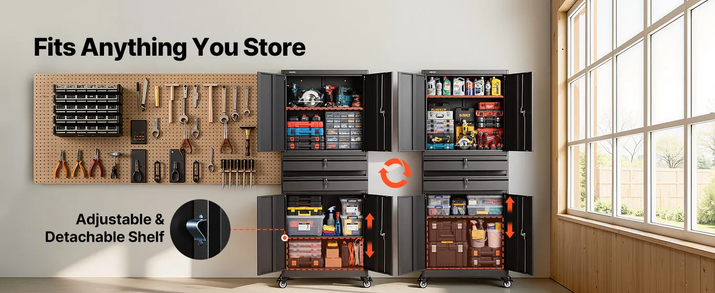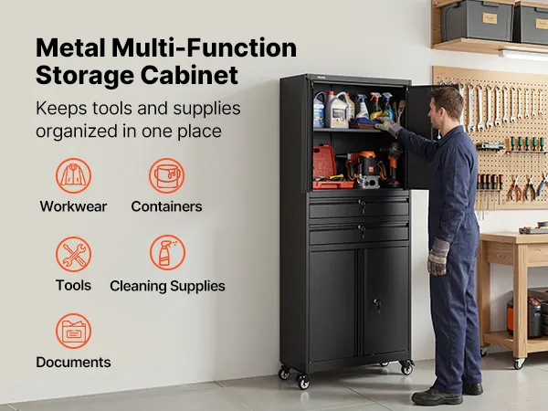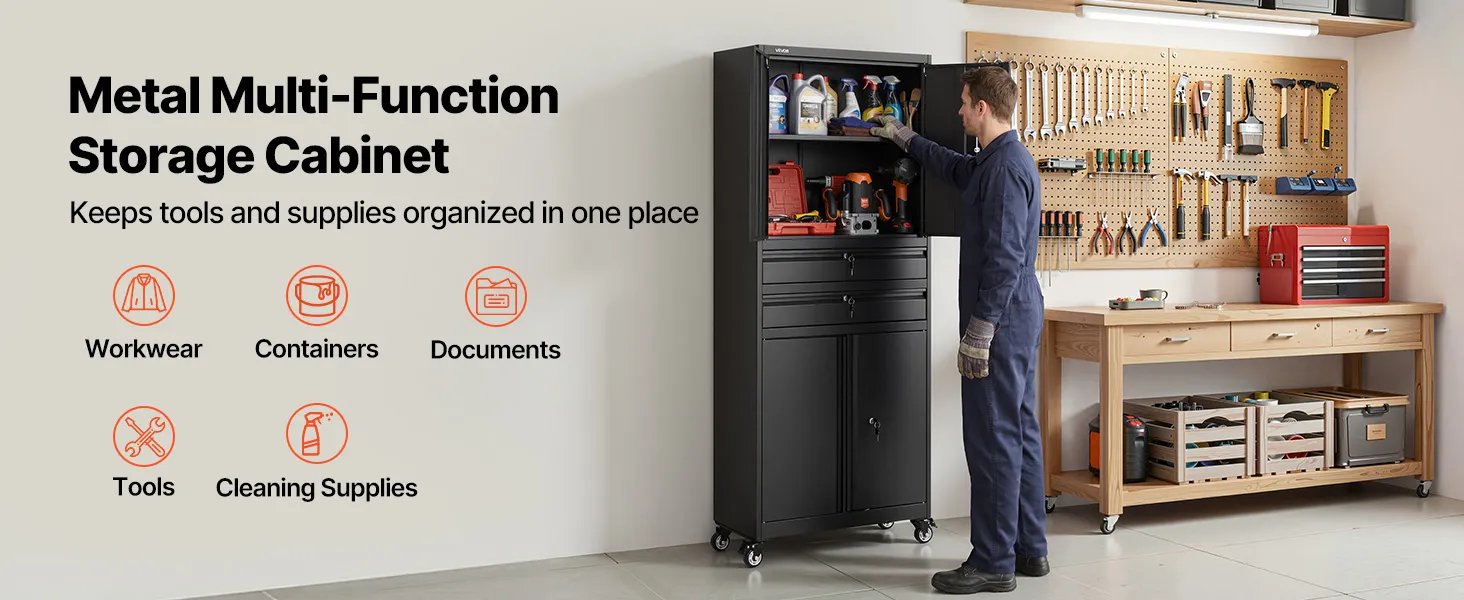 Progettato per resistere a utensili elettrici e attrezzature pesanti, questo armadio da garage offre un supporto stabile per gli strumenti di uso quotidiano. Resiste alla flessione nel tempo, garantendo una robustezza affidabile per le esigenze di stoccaggio a lungo termine.