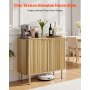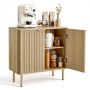 VEVOR Coffee Bar Cabinet, Mid Century Fluted Coffee Bar Table with 2-Tier Storage, Buffet Stand Cabinet with 2 Barn Door, Sideboard Buffet Station for Living Room, Entryway, 80 x 37.5 x 80 cm, Oak
