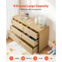 VEVOR 6 Drawer Rattan Dresser, Double Dresser for Bedroom, Natural Rattan Chest of Drawer with Metal Handle, Modern Wood Chest Clothing Organizer & Storage for Bedroom, Living Room, Hallway, Burlywood