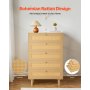 VEVOR 5 Drawer Rattan Dresser, Modern Closet Dresser for Bedroom, Natural Rattan Chest of Drawers with Metal Handles & Wooden Legs, Chest Clothing Organizer & Storage for Bedroom, Living Room, Hallway