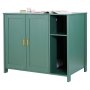 Our cat litter robot enclosure features a vintage green cabinet body paired with gold aluminum alloy handles for a luxurious touch and function. Concealed screws offer a clean, refined finish that enhances overall aesthetics.