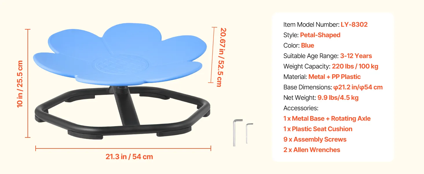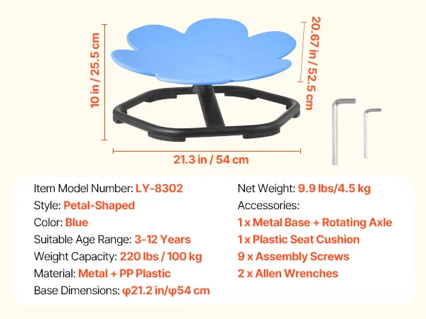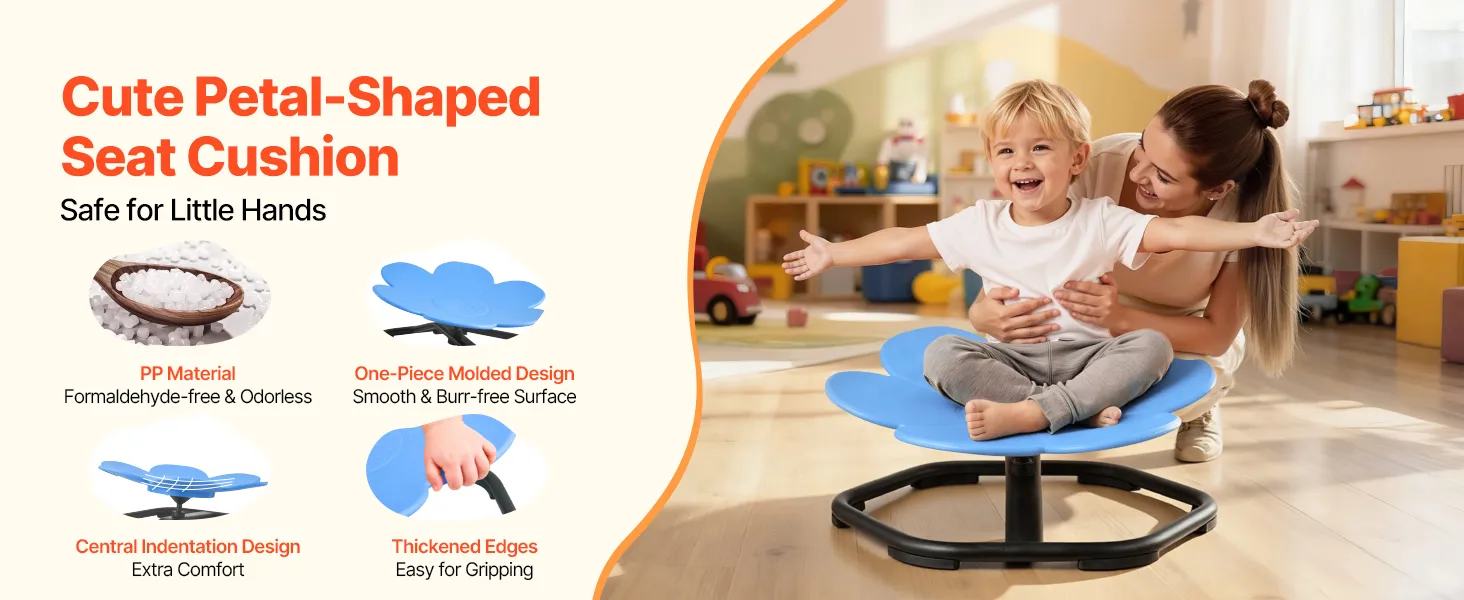 VEVOR Sedia Girevole Sensoriale per Bambini, Capacità di 100 kg, a Forma di Fiore in Metallo Antiscivolo, Sedile per Sedersi e Girare per Coordinazione, Equilibrio e Concentrazione, Blu