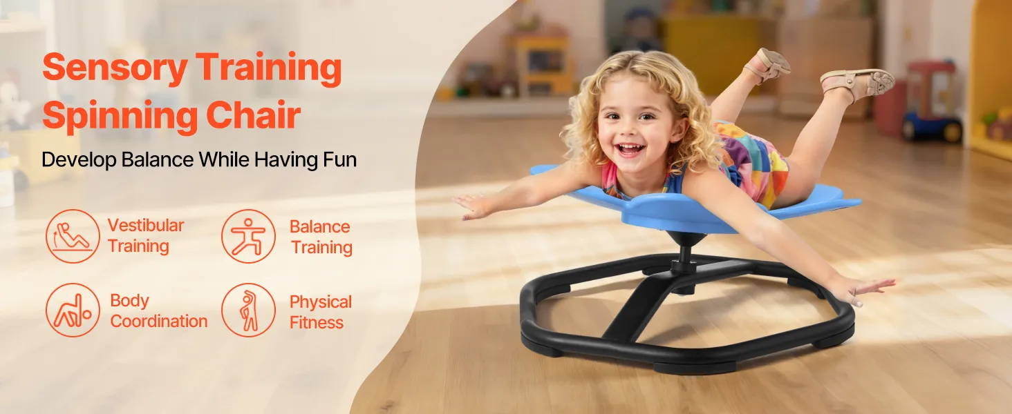 Questa sedia girevole per bambini stimola il sistema vestibolare attraverso la rotazione, aiutando i bambini a rafforzare la presa e i muscoli del core, migliorando la coordinazione, l'equilibrio e lo sviluppo del cervello.