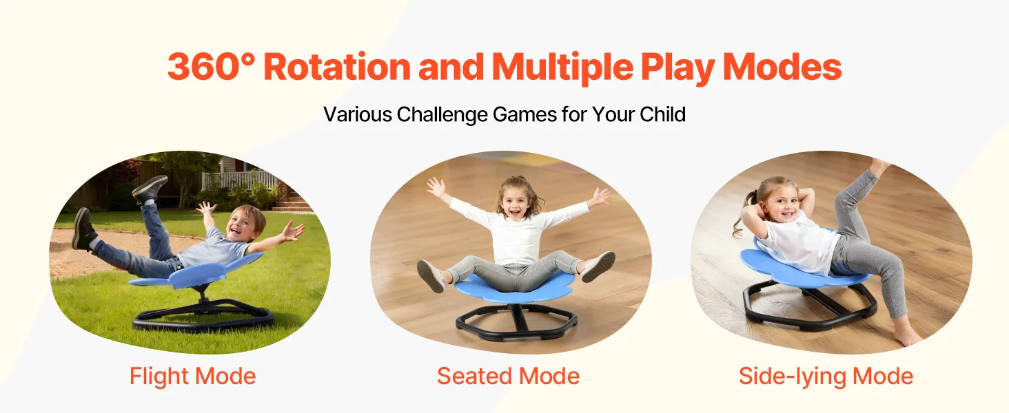 Grazie alla rotazione a 360° e alle molteplici opzioni di gioco, i bambini possono sedersi, sdraiarsi, far girare la sedia girevole sensoriale e creare i propri giochi. Anche i genitori possono partecipare a un gioco divertente e interattivo, rendendolo un ottimo giocattolo per tutta la famiglia.
