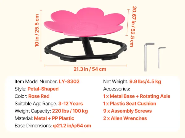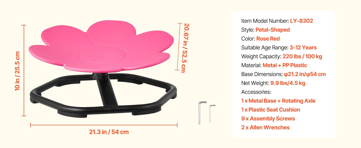 VEVOR Sedia Girevole Sensoriale per Bambini, Capacità di 100 kg, a Forma di Fiore in Metallo Antiscivolo, Sedile per Sedersi e Girare per Coordinazione, Equilibrio e Concentrazione, Rosso