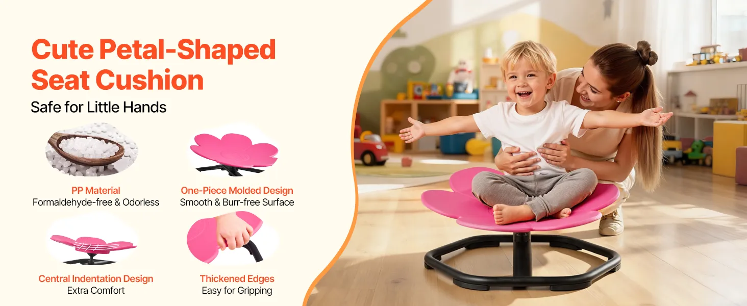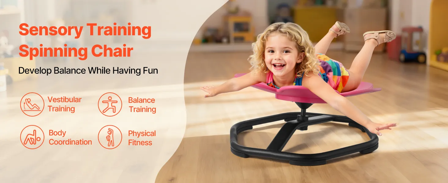 Questa sedia girevole per bambini stimola il sistema vestibolare attraverso la rotazione, aiutando i bambini a rafforzare la presa e i muscoli del core, migliorando la coordinazione, l'equilibrio e lo sviluppo del cervello.