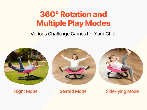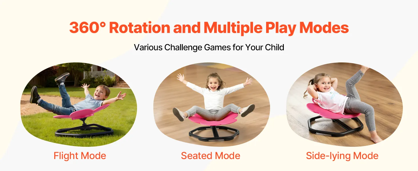 Grazie alla rotazione a 360° e alle molteplici opzioni di gioco, i bambini possono sedersi, sdraiarsi, far girare la sedia girevole sensoriale e creare i propri giochi. Anche i genitori possono partecipare a un gioco divertente e interattivo, rendendolo un ottimo giocattolo per tutta la famiglia.