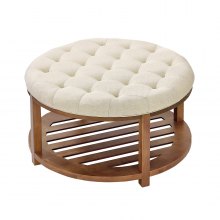 VEVOR Tavolino da Caffè Rotondo 810 x 810 x 476 mm con Contenitore in Legno Massello, Poggiapiedi in Lino per Salotto, Camera da Letto, Soggiorno, 158,76 kg, Colore Lino