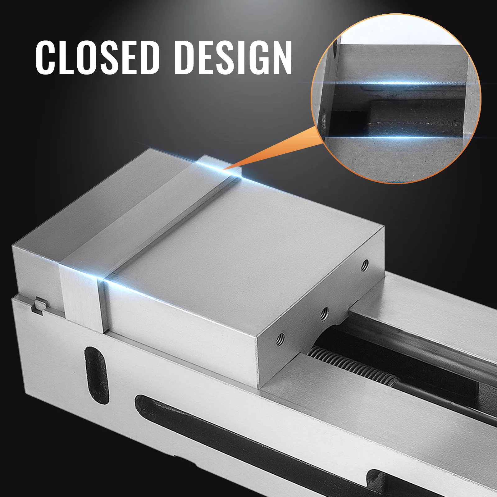 • 【VITE AD ALTA PRECISIONE】 - Il design chiuso protegge l'asta della vite e impedisce l'ingresso di perni di ferro e altri detriti, il che è conveniente per la manutenzione e la pulizia. La morsa può essere utilizzata non solo orizzontalmente, lateralmente, ma anche verticalmente e la sua precisione rimane a 0,0008" (0,02 mm).