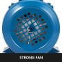 La grande ventola ad un'estremità raffredda il motore in ore di funzionamento, anche in ambienti polverosi o umidi. Riduzione dei costi energetici o delle spese generali, riduzione della temperatura di funzionamento, aumento della durata degli avvolgimenti.
