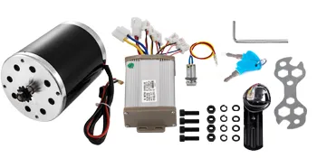 Il nostro nuovissimo motore elettrico con spazzole realizzato con alta qualità, funziona con 36 volt CC, 800 watt e corrente nominale: 28,5 A. Controller, chiave di accensione e maniglia sono inclusi.