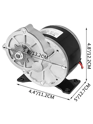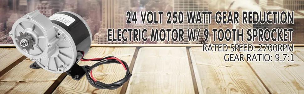 L'elenco è di circa 24 V 250 W DC motore elettrico, motoriduttore di tipo a spazzole. Pignone per catena # 410, velocità nominale di 2700 giri / min, rapporto di trasmissione 9,7: 1. Il motore spazzolato è perfetto per la tua sostituzione, compatibile con la catena standard per biciclette, può essere utilizzato per biciclette, e-bike o mini-bici.