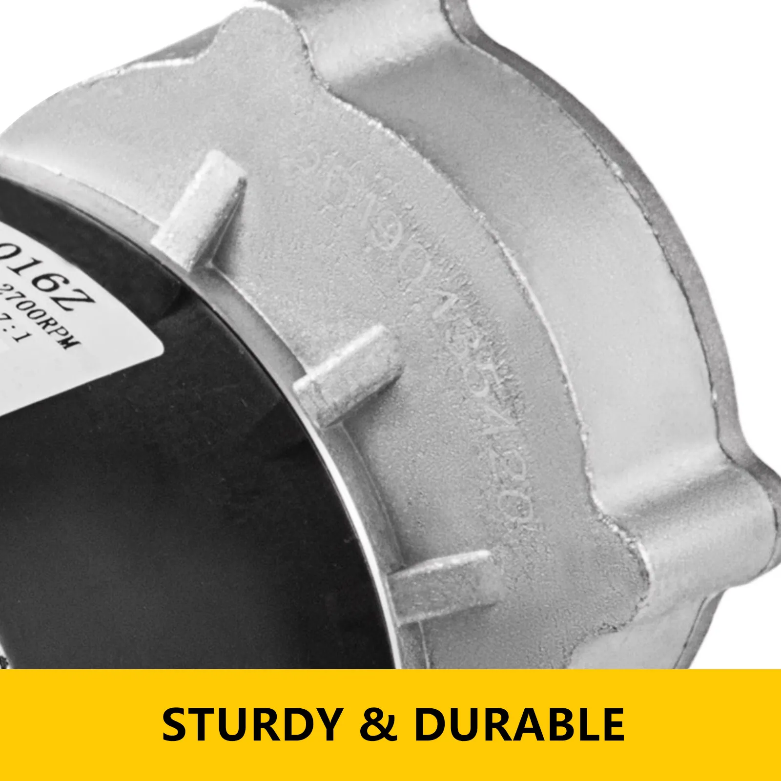 Logo VEVOR con lo slogan "attrezzature e utensili resistenti, paga meno" in nero e giallo.