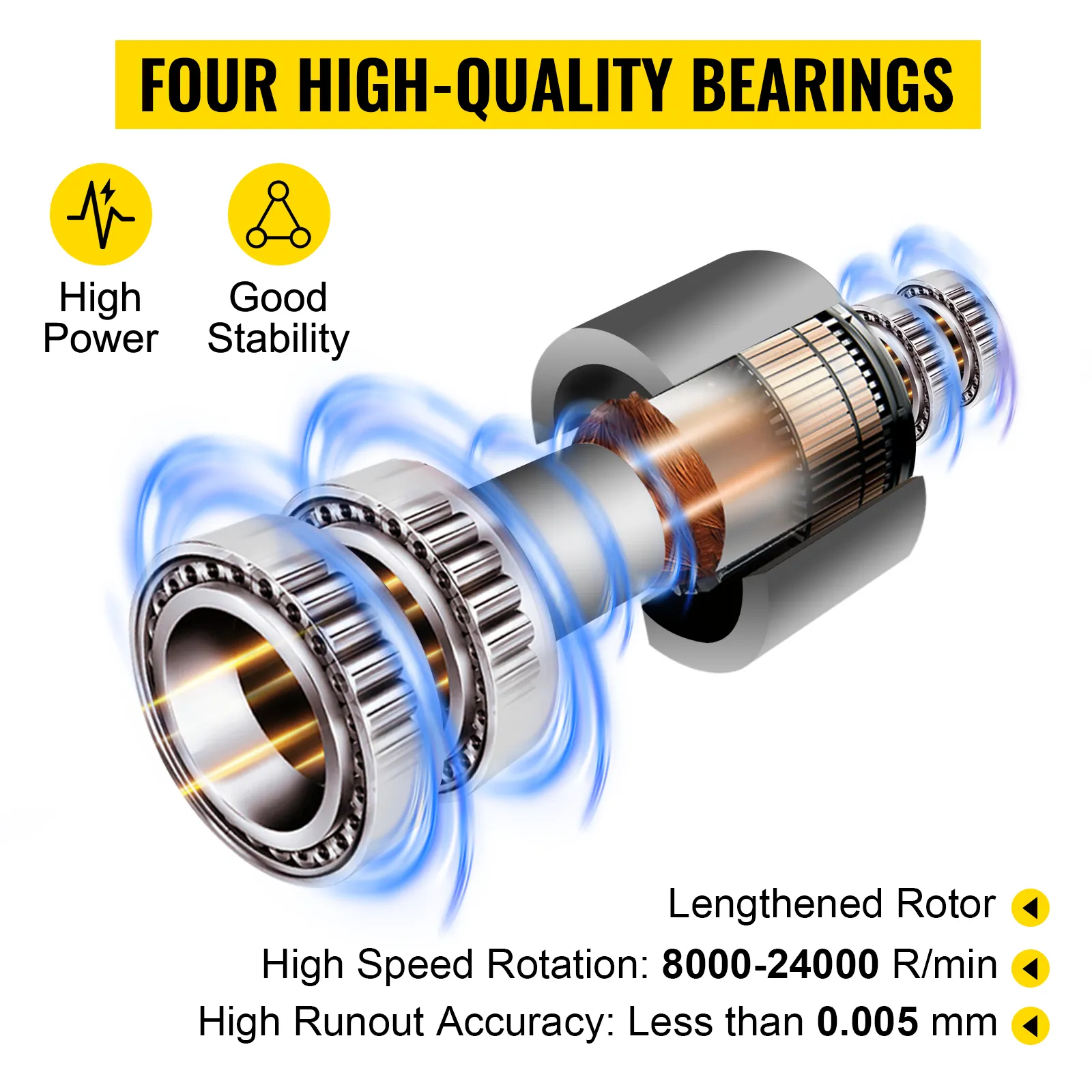 Il cuscinetto aggiornato presenta due vantaggi significativi: durata superiore e prestazioni antiruggine. L'alta velocità (8000-24000 R/min) e la forte potenza garantiscono una maggiore efficienza rispetto a prima.