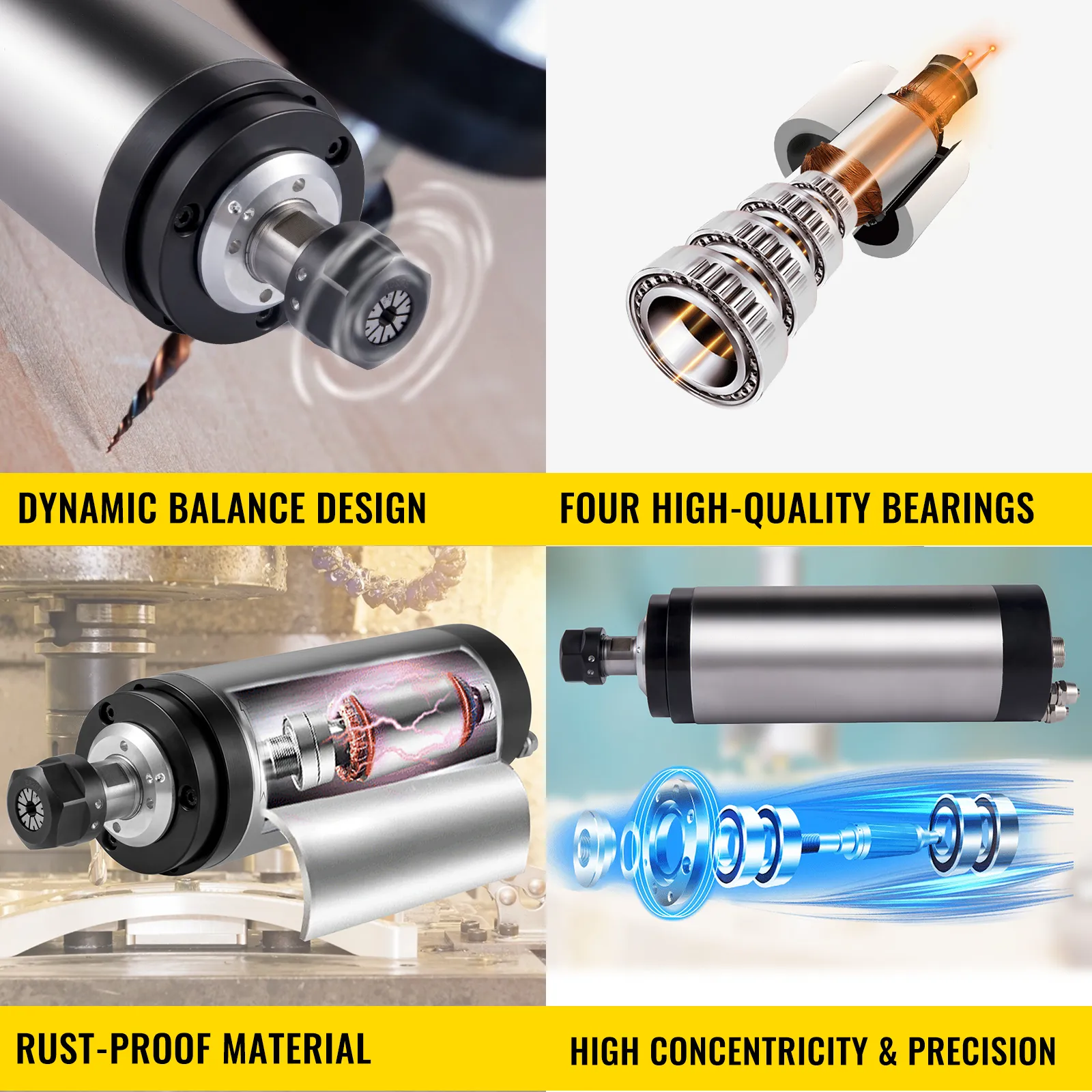 Il kit motore mandrino CNC viene fornito con un motore mandrino premio, azionamento a frequenza variabile, morsetto mandrino in alluminio per resistenza alle alte temperature, basso rumore e basso attrito e alta velocità. È ampiamente applicabile alle macchine per incisione per intagliare materiali come legno, pietra, metallo, ecc.