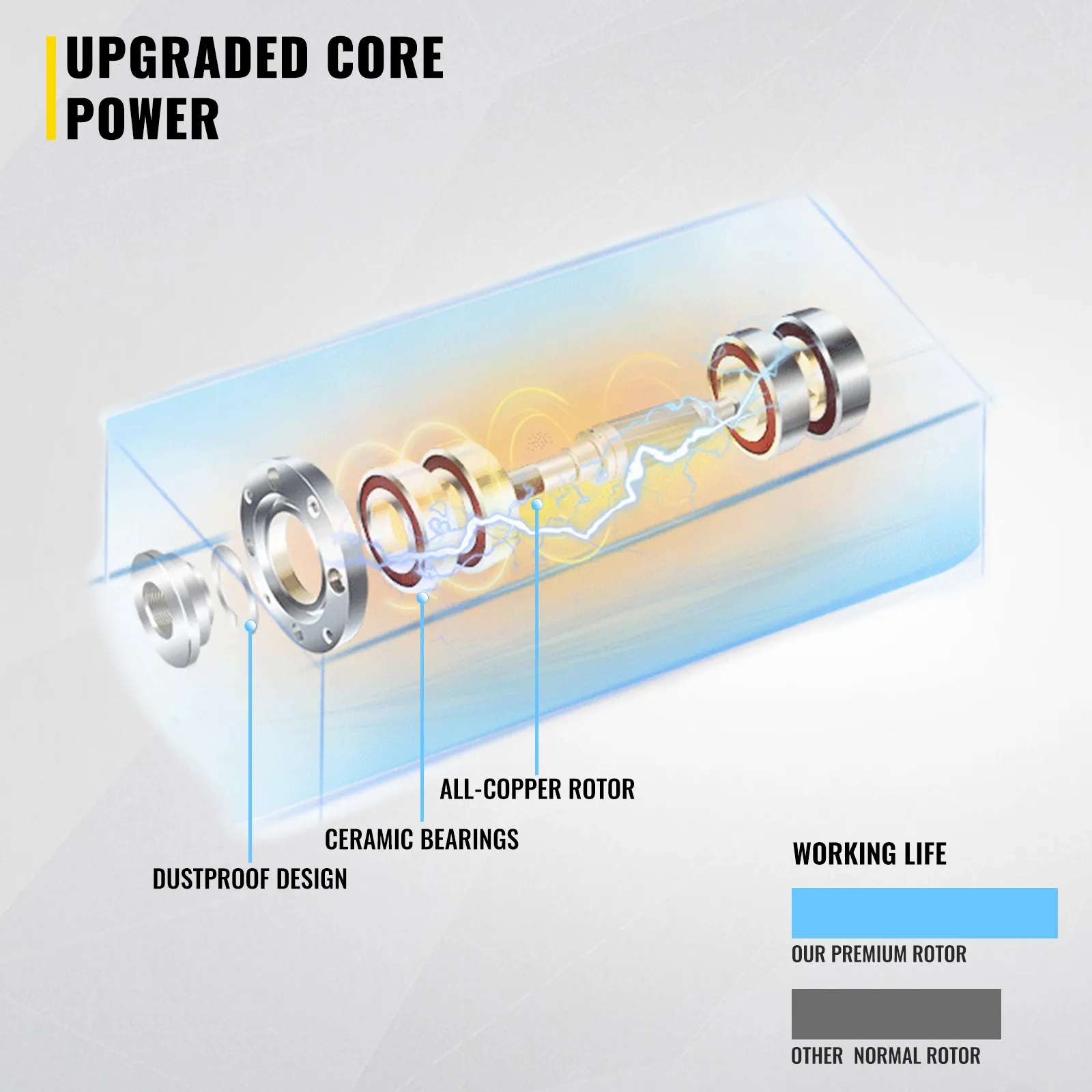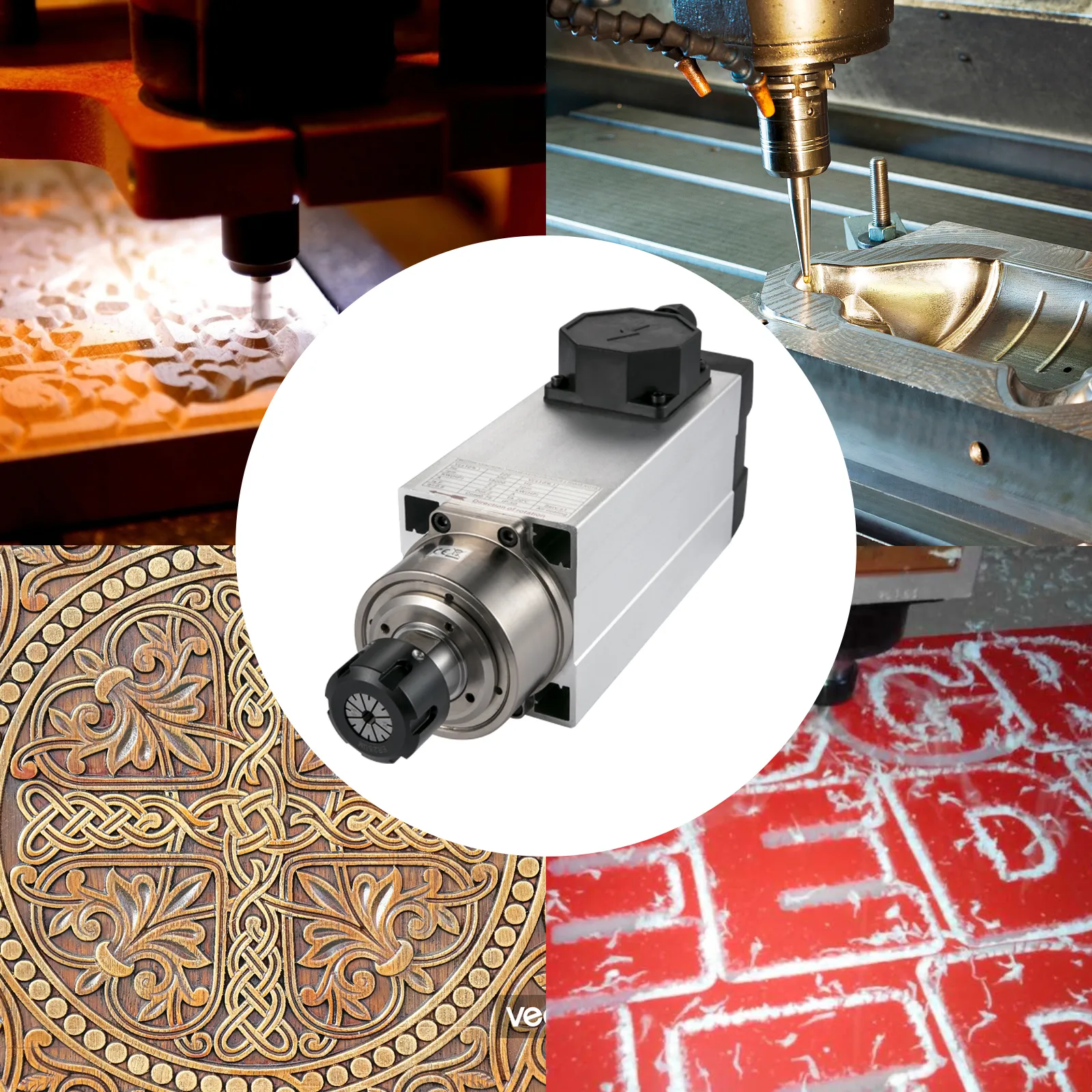 L'uso di materiali in lega di alluminio di alta qualità rende il motore del mandrino più robusto. L'involucro in metallo migliora notevolmente l'efficienza di raffreddamento.
