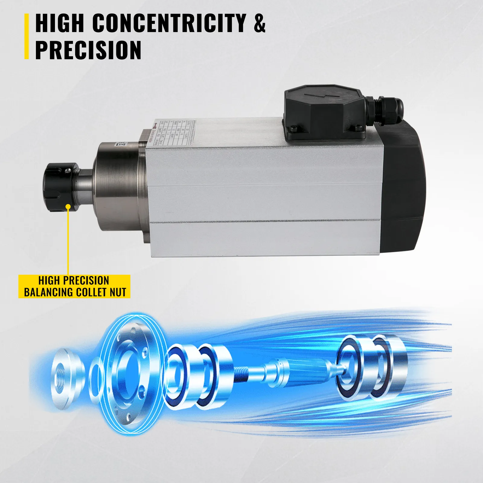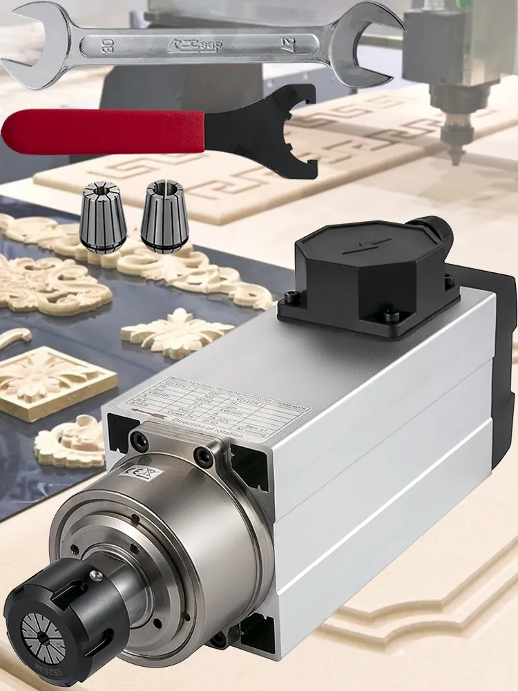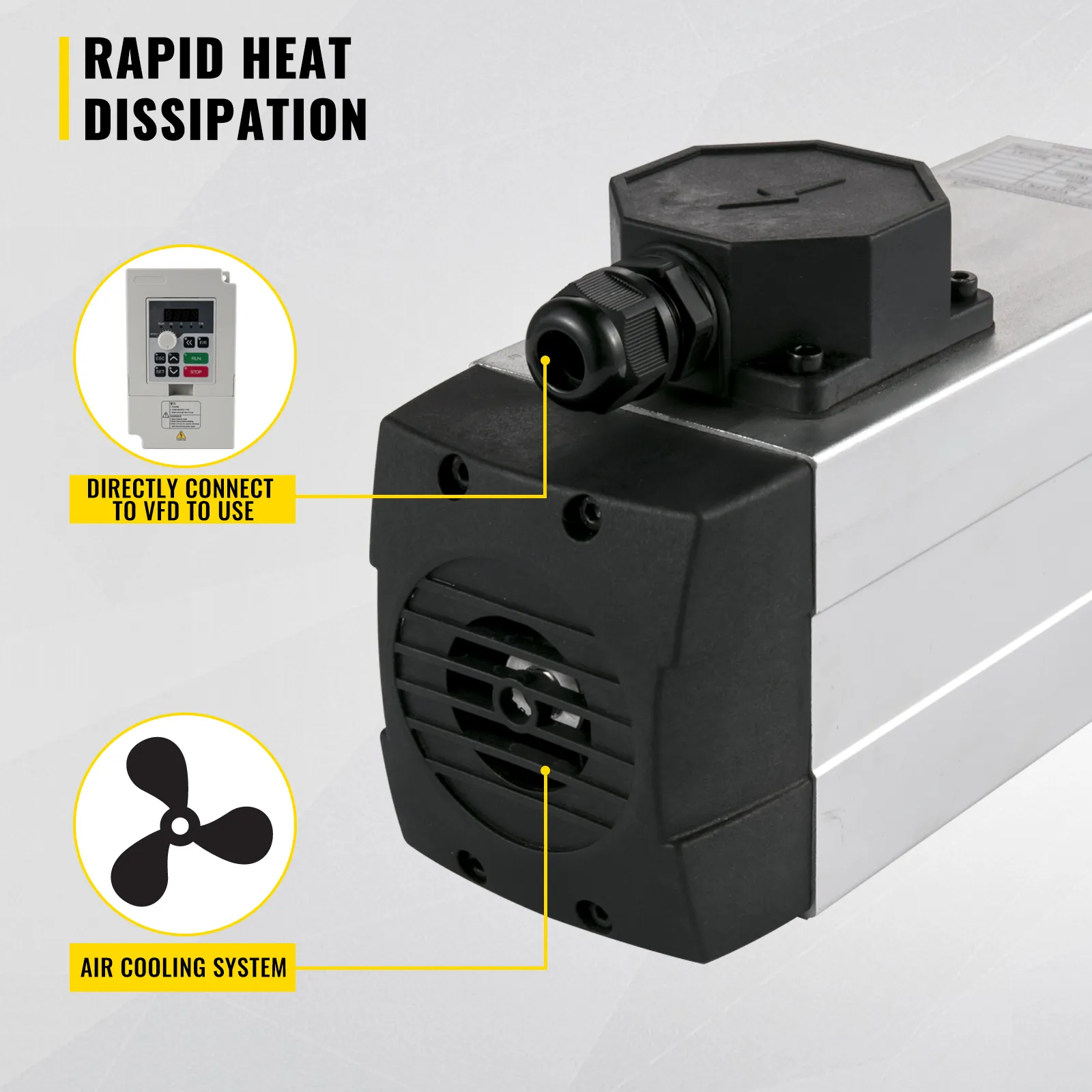 Il motore mandrino raffreddato ad aria sfrutta il sistema di raffreddamento ad aria per raffreddare il calore della macchina. È possibile connettersi direttamente al VFD per funzionare senza tubi dell'acqua e pompe.