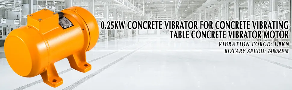 Vibratore per calcestruzzo elettrico ad alta frequenza appositamente progettato per tavoli vibranti in calcestruzzo. Vibratori calcestruzzo usato per calcestruzzo prefabbricato (la vibrazione del calcestruzzo nello stampo) per ottenere una finitura liscia, una maggiore densità, e versando più veloce. Il movimento del tavolo vibrante sposta le bolle d'aria fuori dal calcestruzzo per produrre un getto di calcestruzzo liscio, di qualità professionale e privo di sacche d'aria.