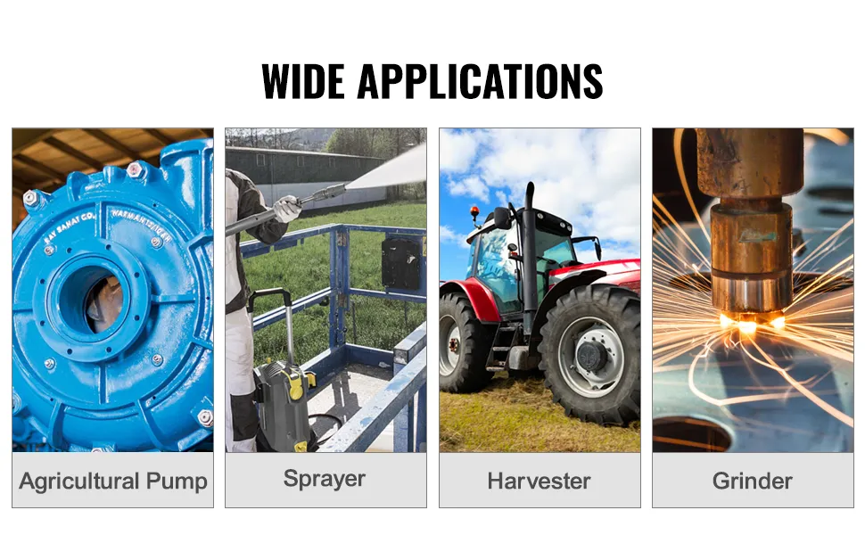 Il nostro motore CA per uso generale è perfetto per un'ampia gamma di applicazioni, tra cui pompe dell'acqua, irroratrici, mietitrici e smerigliatrici. Che sia per uso agricolo o industriale, questo motore soddisfa le tue esigenze e supporta i tuoi progetti con prestazioni affidabili.