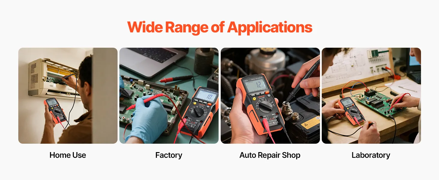 Questo multimetro digitale professionale è adatto per la risoluzione dei problemi degli elettrodomestici, per i test dei circuiti automobilistici, per misurazioni precise in laboratorio e molto altro ancora; è facile da gestire per un'ampia gamma di attività di riparazione e collaudo.