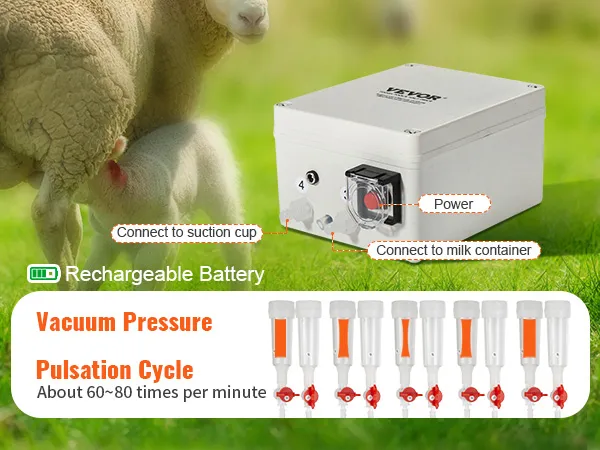 Libera le tue mani: dì addio alle scomode sessioni di mungitura! Non dovrai più sopportare la sudorazione in estate o il freddo in inverno. La nostra mungitrice per capre funziona a 60-80 volte al minuto, offrendoti un'esperienza di mungitura che fa risparmiare tempo e manodopera.