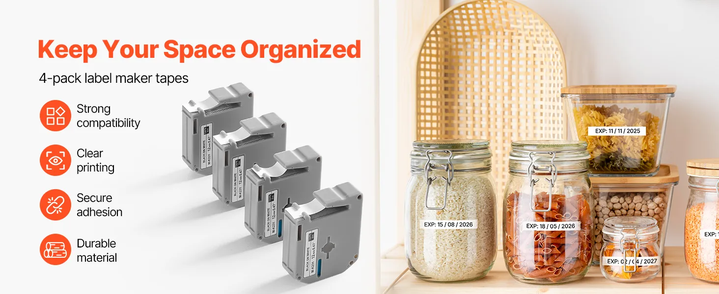 Stampa chiara: questo nastro per etichette garantisce testi nitidi e chiari ogni volta. Niente sbavature: solo etichette nitide e leggibili che rendono i tuoi articoli facili da trovare. Addio confusione e benvenuto efficienza