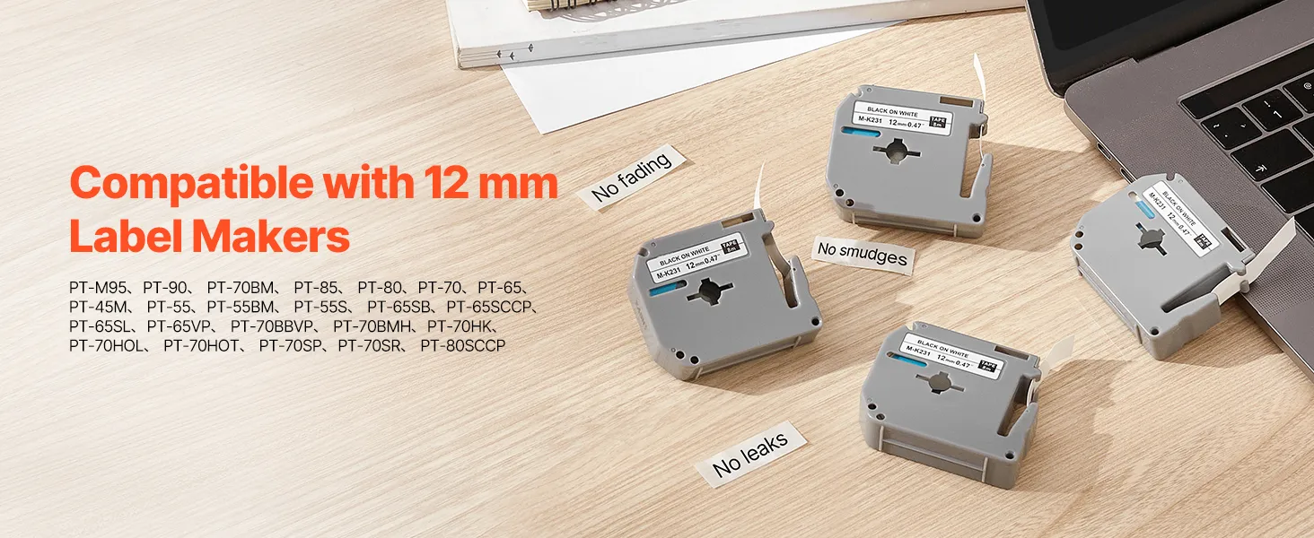 Il nostro nastro per etichettatrici è compatibile con una vasta gamma di etichettatrici Brother, come PT-M95, PT-90, PT-70BM e così via. Non preoccuparti della compatibilità: soddisfa facilmente tutte le tue esigenze di etichettatura.