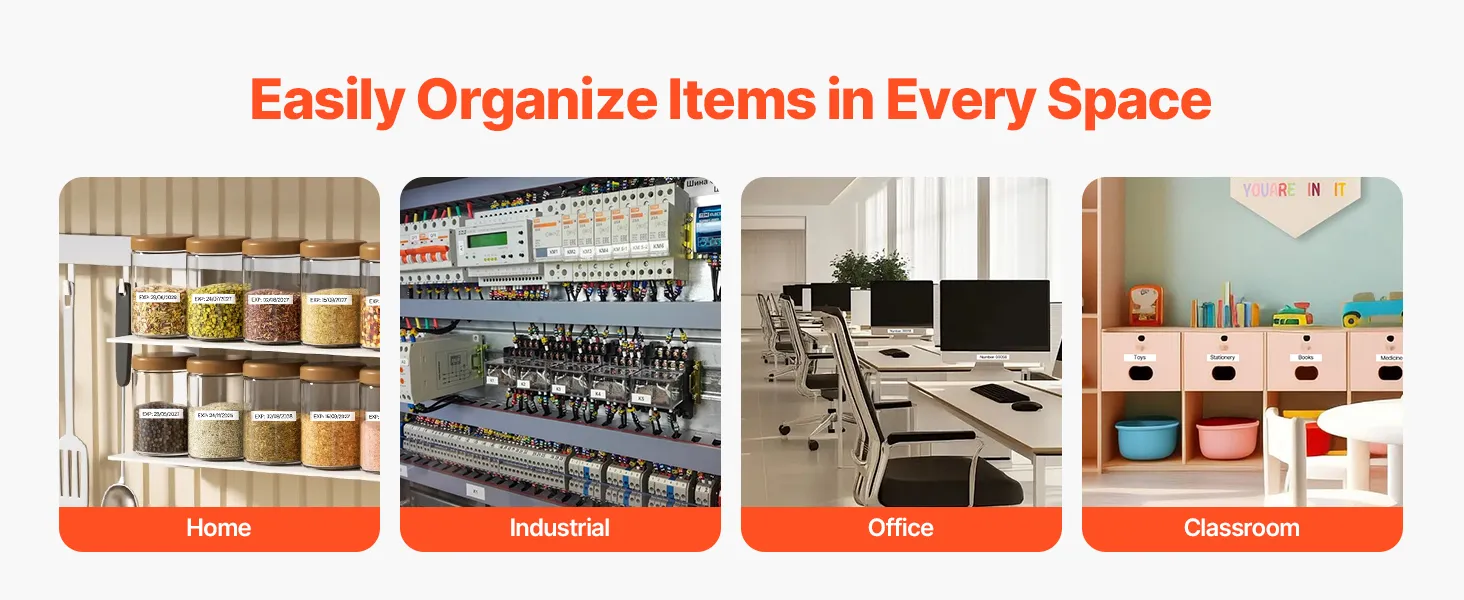 Utilizzo versatile: che si tratti di cartelle, vasi da fiori, barattoli per spezie o libri, questa cartuccia per etichette ti aiuta a organizzare e identificare gli oggetti con facilità. Non dovrai più cercare ciò che ti serve: basta uno sguardo e il gioco è fatto