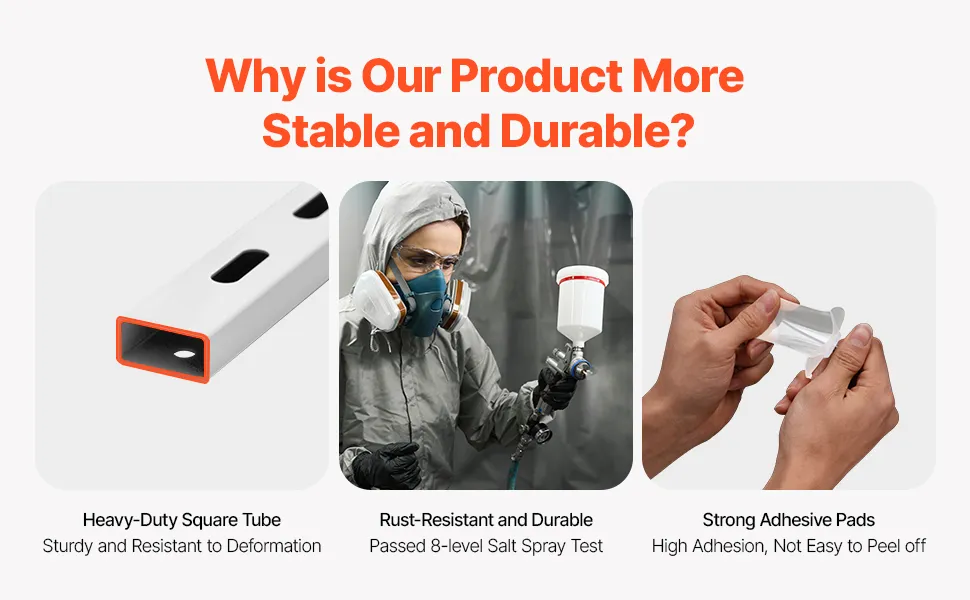 Una volta installato, non dovrai preoccuparti che l'organizzatore per ante di armadietto regolabile oscilli o cada perché utilizziamo un robusto telaio in tubo quadrato che ha superato un test di nebbia salina di 8 livelli.