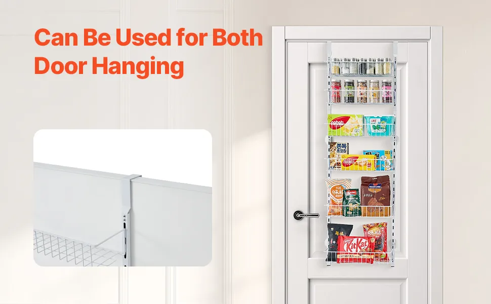 Puoi appendere l'organizzazione della dispensa e il rack di stoccaggio su una porta di un mobile o di una stanza, oppure usare le viti incluse per fissarlo al muro. In entrambi i casi, è semplicissimo e ti offre opzioni di installazione flessibili.