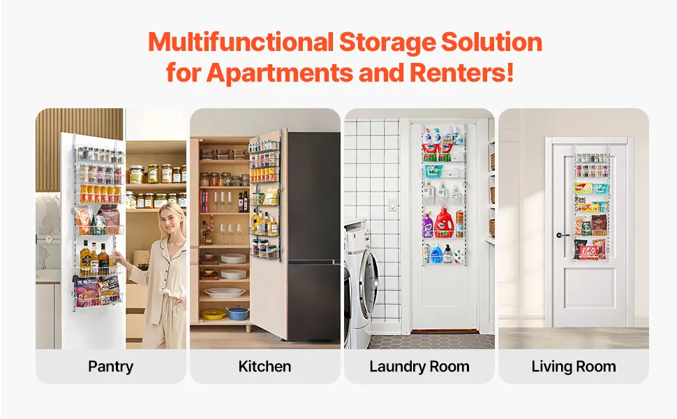 Archiviazione multifunzionale: questo Organizzatore regolabile per ante di armadietti è perfetto per appartamenti e affittuari. Che tu abbia bisogno di spazio di archiviazione extra in cucina, dispensa, bagno, soggiorno o lavanderia, è la soluzione ideale per soddisfare le tue esigenze