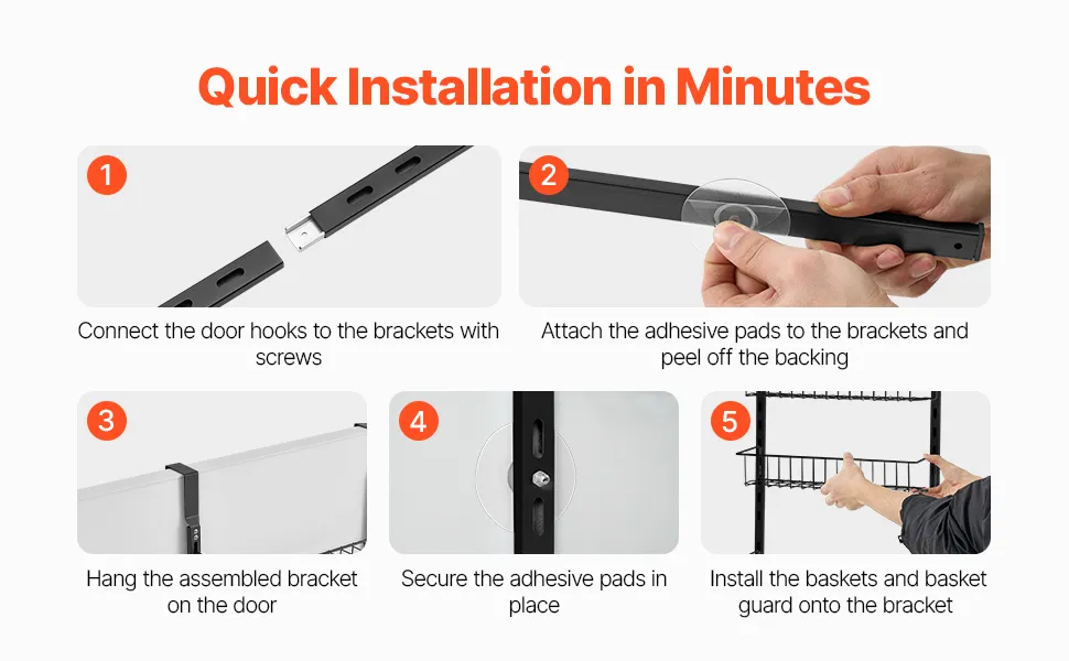 Regolabile e facile da installare: questo scaffale per l'organizzazione e lo stoccaggio della dispensa presenta una spaziatura regolabile dei cestelli per ospitare articoli di diverse altezze. Puoi appenderlo alla porta o utilizzare le viti incluse per montarlo a parete, con il montaggio completato in pochi minuti