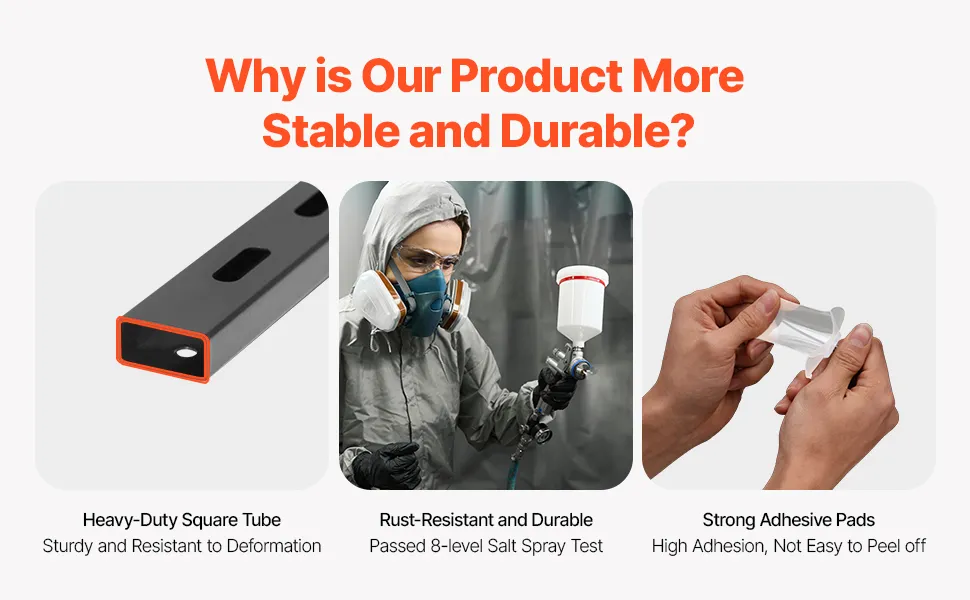 Una volta installato, non dovrai preoccuparti che l'organizzatore per ante di armadietto regolabile oscilli o cada perché utilizziamo un robusto telaio in tubo quadrato che ha superato un test di nebbia salina di 8 livelli. I cuscinetti adesivi resistenti lo tengono in posizione.