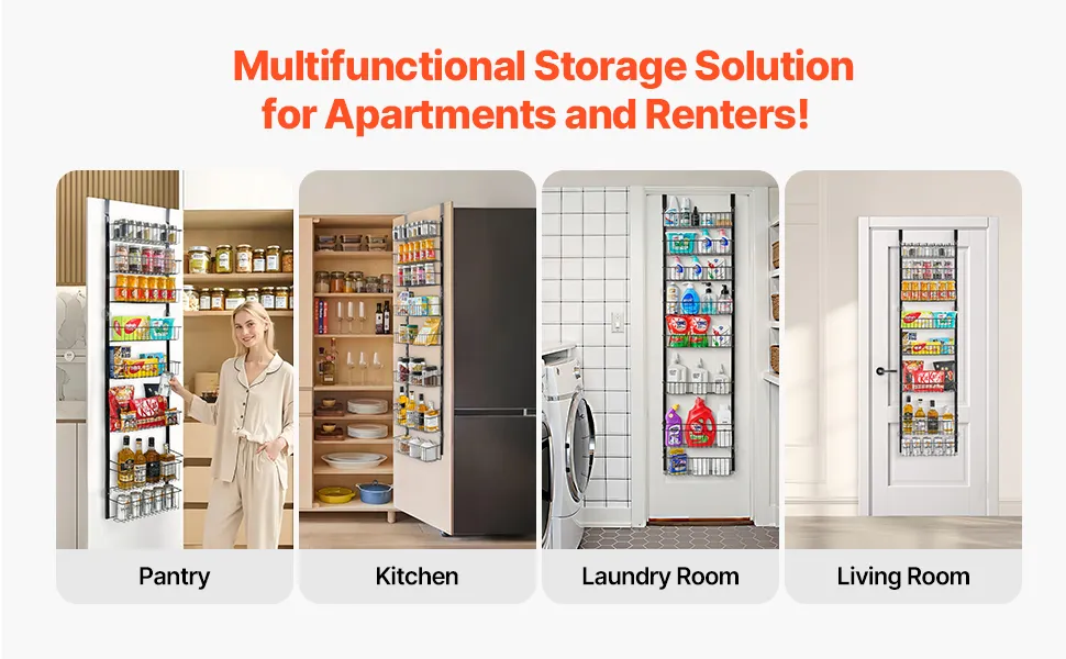 Questo organizzatore per spezie sospeso è versatile. Puoi usarlo come organizzatore per spezie sulla porta della cucina, come organizzatore per armadio in lavanderia o come organizzatore per dispensa sulla porta. Aggiunge spazio di archiviazione extra.