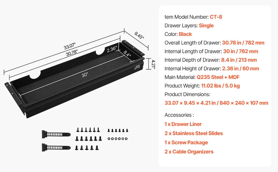 Spazio di archiviazione extra-large: questo cassetto sotto la scrivania da 30,78 pollici/782 mm espande lo spazio di archiviazione sotto la scrivania, offrendo ampio spazio per riporre attrezzi, forniture per ufficio e altro ancora