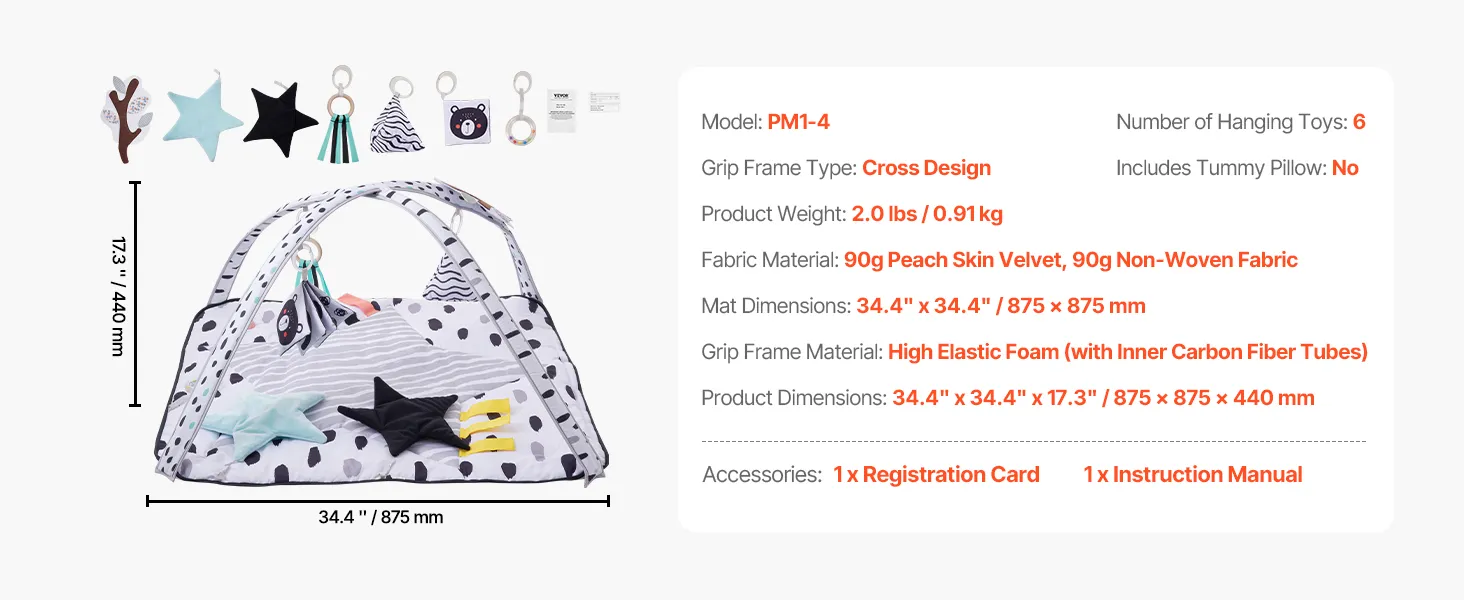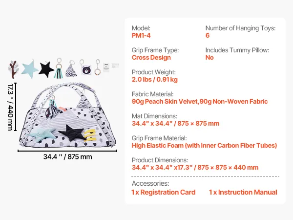 Favorisci la crescita del tuo bambino: progettato per bambini di età compresa tra 0 e 18 mesi, questo tappetino da palestra multifunzionale per bambini VEVOR offre uno spazio confortevole per riposare, giocare e imparare. Con 6 giocattoli interattivi e 2 palline touch, promuove lo sviluppo sensoriale e le capacità motorie del bambino