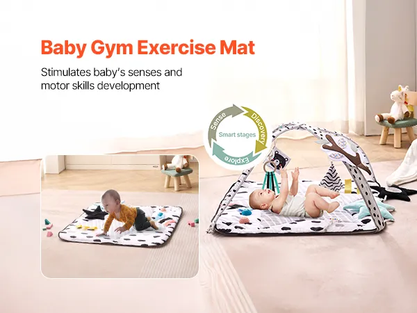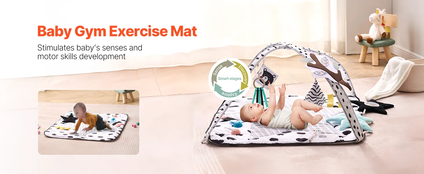 Il nostro tappetino da gioco per neonati è essenziale per lo sviluppo delle capacità sensoriali e motorie del bambino. Il grande tappetino da gioco da 34,4" x 34,4" con 6 giocattoli sensoriali è perfetto per i bambini nella fase cognitiva.