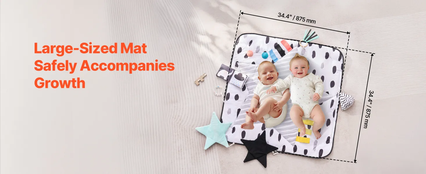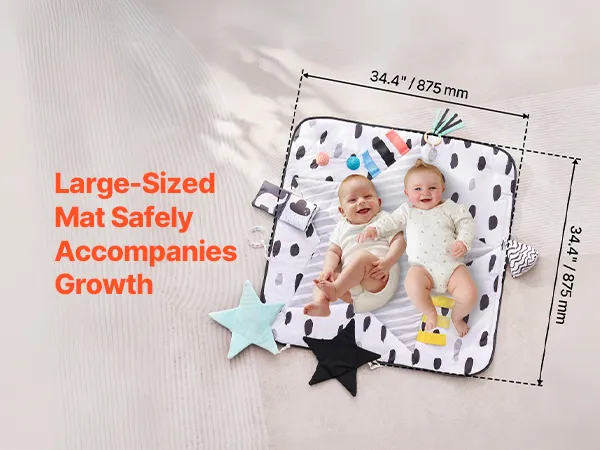 Questo grande tappetino da gioco per la pancia da 34,4" x 34,4" offre ampio spazio, accompagnando in modo sicuro la crescita del tuo bambino. Realizzato con materiali senza BPA e senza piombo, garantisce la salute e la sicurezza del tuo bambino.