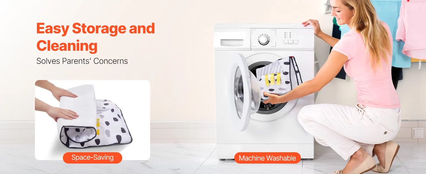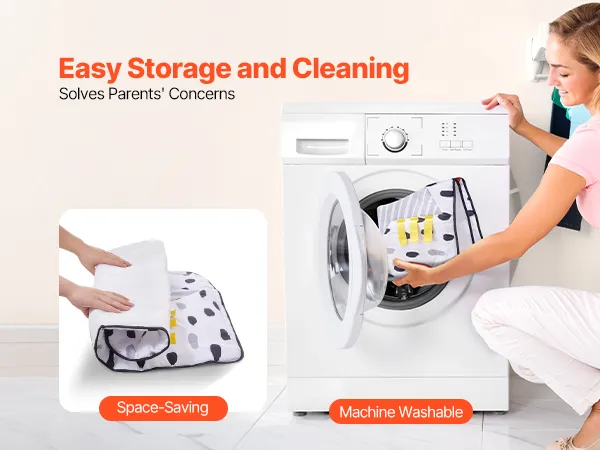 Questo tappetino da gioco e palestra per neonati è lavabile in lavatrice per una pulizia comoda e può essere facilmente piegato per essere riposto, aiutando i genitori a risolvere i problemi di pulizia e stoccaggio.