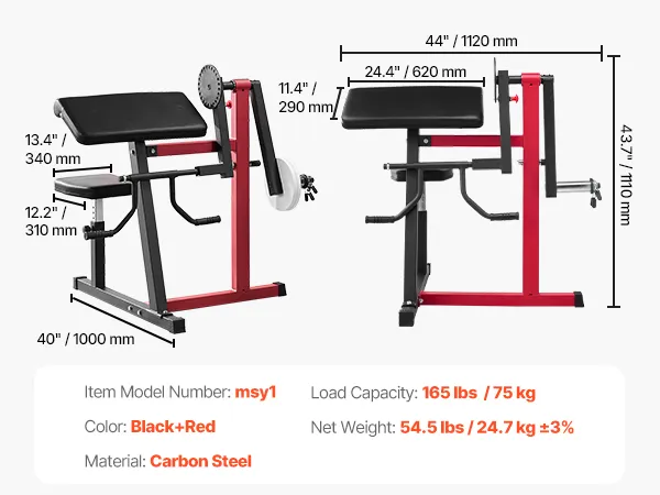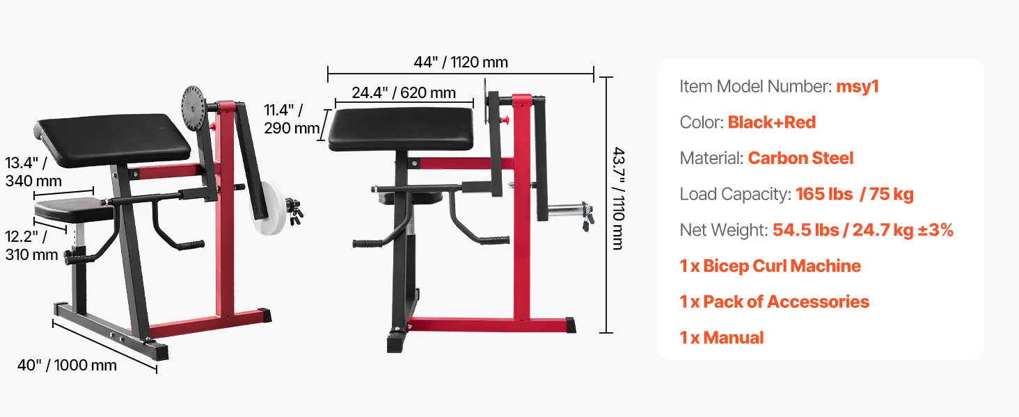 Compatibilità con i dischi di peso: progettata per la flessibilità, questa macchina per curl bicipiti supporta dischi di peso da 1" e 2" con una capacità di carico massima di 165 libbre (75 kg). Nota: i dischi di peso sono venduti separatamente, consentendoti di personalizzare l'intensità dell'allenamento