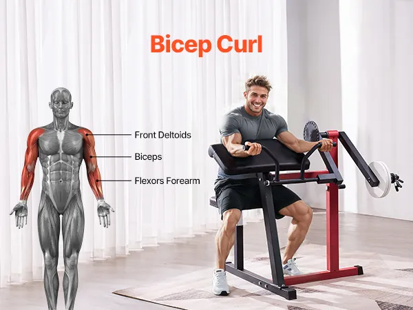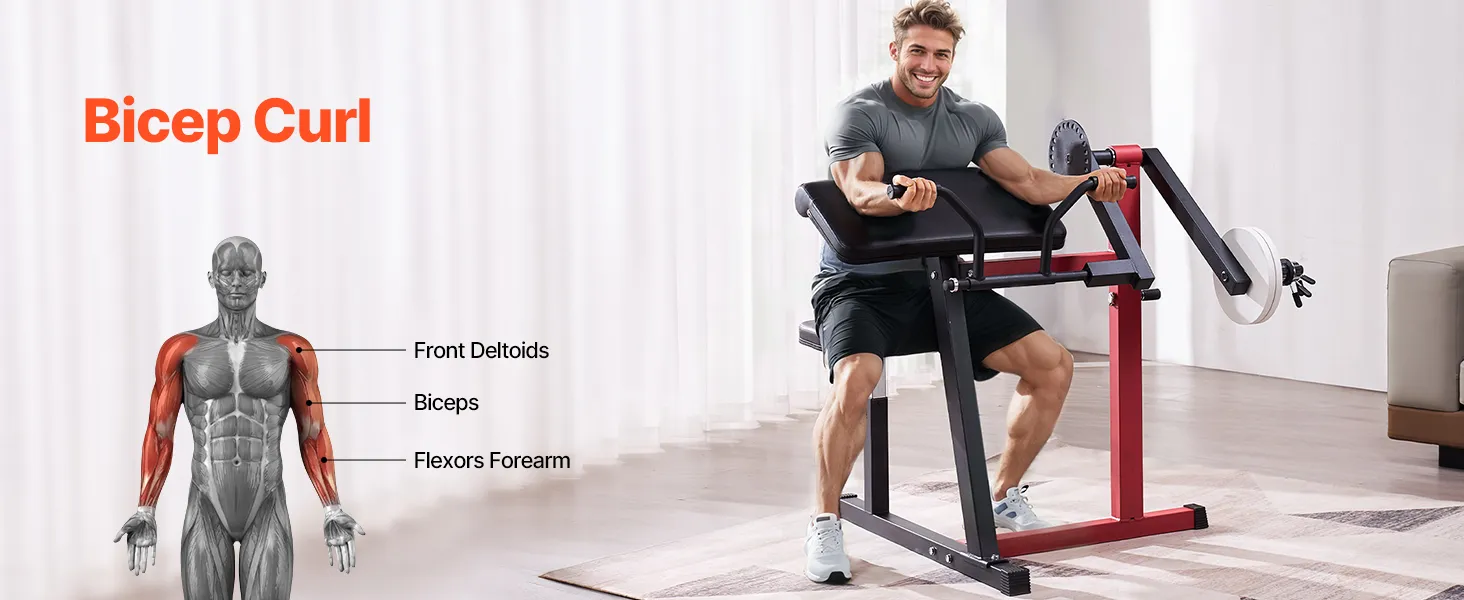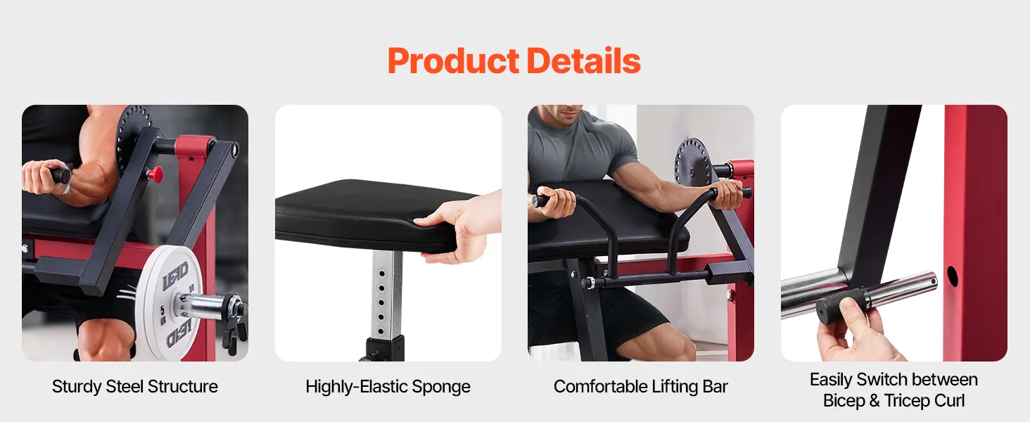 Macchina 2 in 1 per bicipiti e tricipiti: questa panca per curl da predicatore combina perfettamente curl per bicipiti ed estensioni per tricipiti, aiutandoti a sviluppare e tonificare in modo efficiente i muscoli forti delle braccia. Passa senza sforzo da un esercizio all'altro per concentrarti su diversi gruppi muscolari senza cambiare attrezzatura