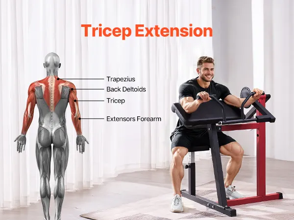 La funzione di estensione del tricipite è ideale per mirare e tonificare la parte posteriore delle braccia. Questa funzione isola i tricipiti per la massima attivazione muscolare, aiutandoti a sviluppare la forza e a ottenere un aspetto ben definito.