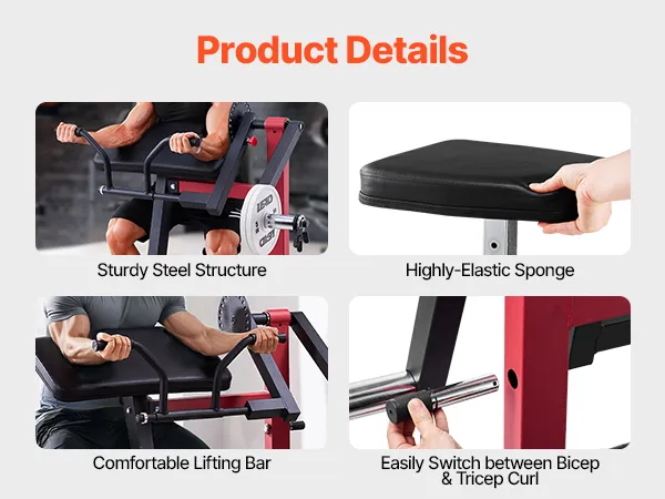 Dettagli più umanizzati: dotata di imbottitura in spugna altamente elastica, una comoda barra di sollevamento e un meccanismo di commutazione intuitivo, questa macchina per curl predicatore offre una transizione fluida e confortevole tra esercizi per bicipiti e tricipiti per un allenamento ottimizzato