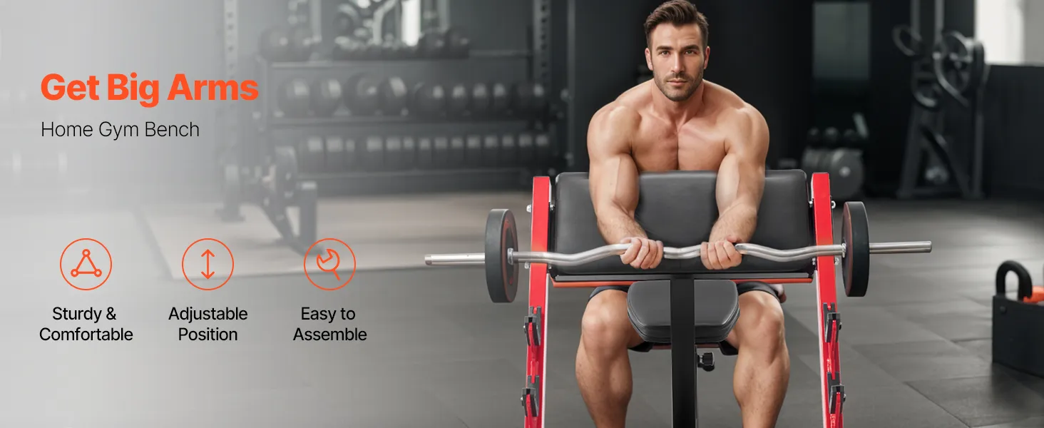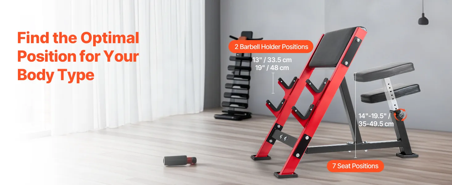 VEVOR Panche per Allenamento Forza per Bicipiti, Carico 300 kg, Stazione per Bicipiti con Manubrio e Bilanciere Isolati per Braccio Seduto, Panca per Pesi Regolabile con Supporti per Barre
