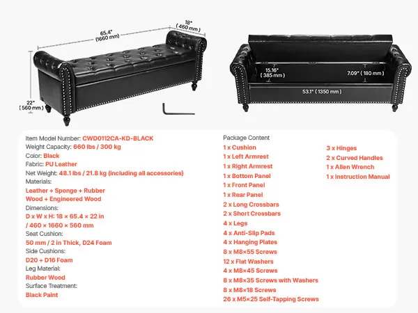 Pelle PU liscia: rivestita in pelle PU di alta qualità con una texture setosa e cuciture raffinate. Resistente all'acqua e facile da pulire, ideale per le case più frequentate