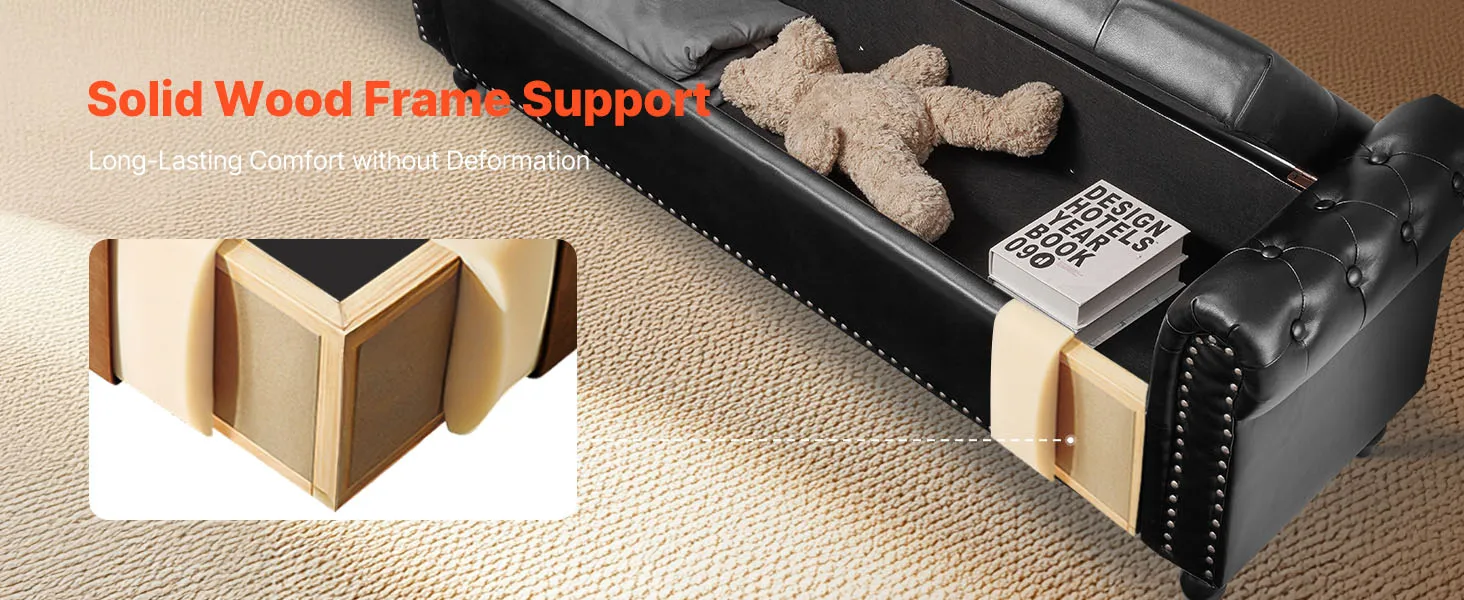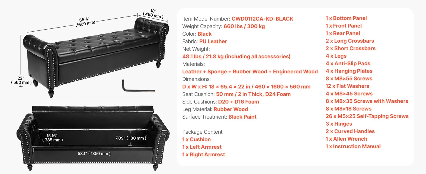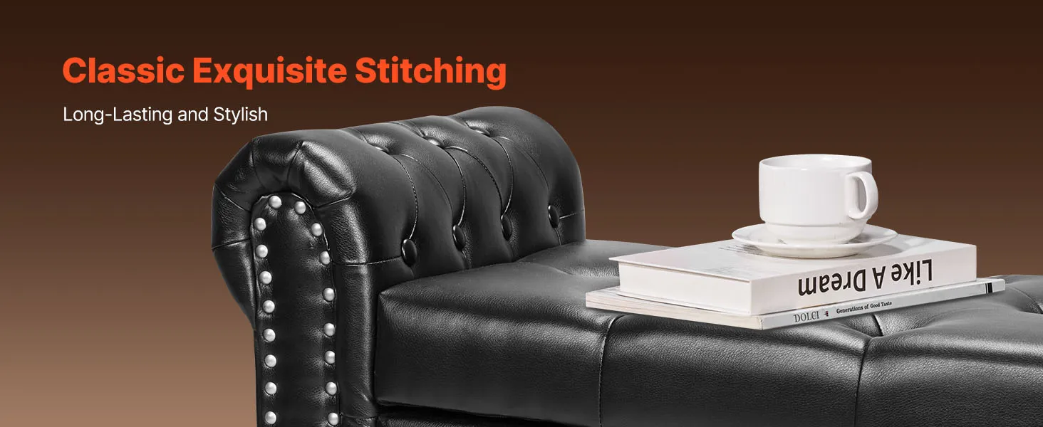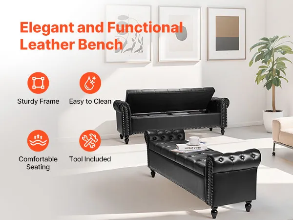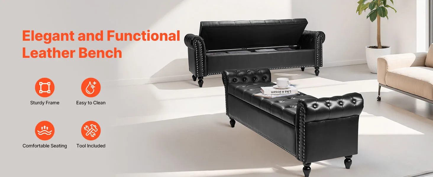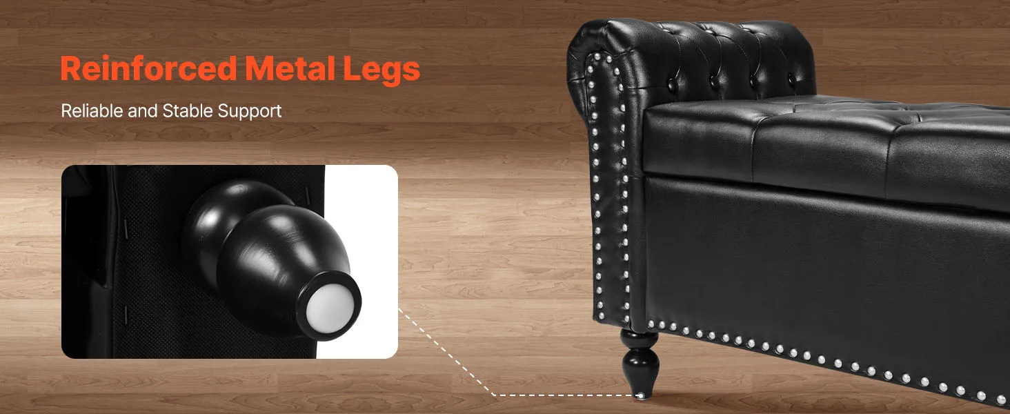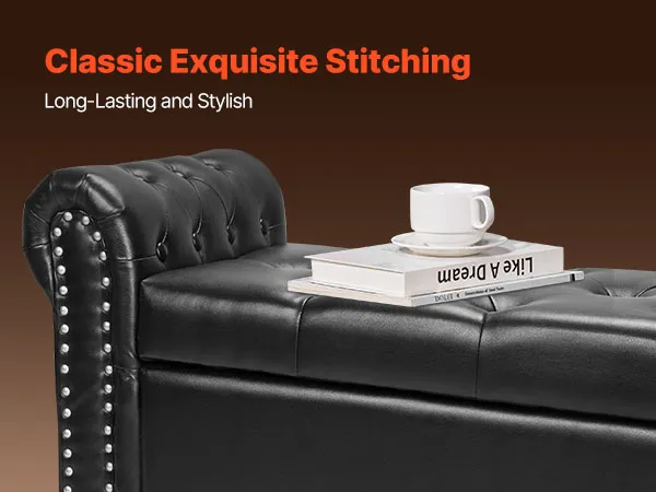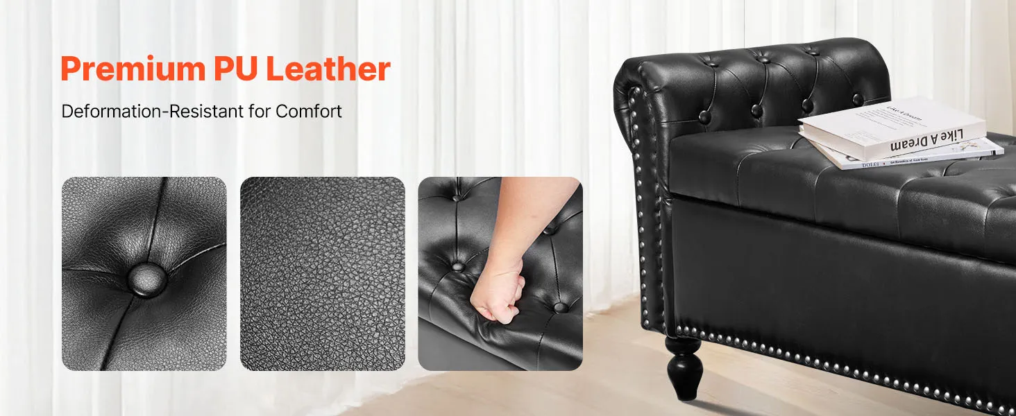 VEVOR Panca Contenitore con Bottoni Trapuntati, Panca in Similpelle con Braccioli Arrotolati e Gambe in Legno Massello, Panche per Ingresso, Panche Imbottita per Soggiorno e Sala da Pranzo, Nero
