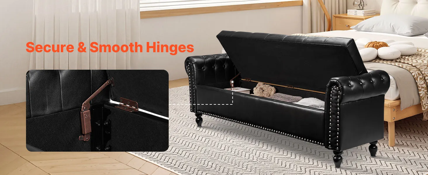 Questa panca da camera da letto in similpelle è dotata di un vano portaoggetti nascosto, di una capacità di carico affidabile e di un comfort elevato, coniugando bellezza e praticità per una camera da letto più organizzata ed elegante.